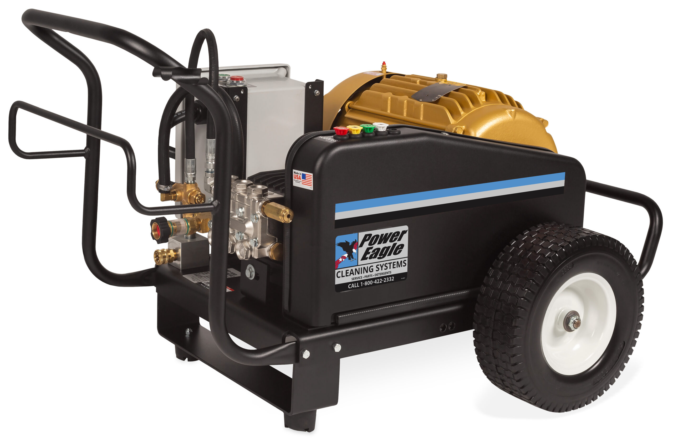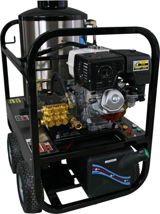 Power Eagle DC series units are ideal for mobile washers, or any user who requires full portability. DC models are packed with high performance features and durable components, all while utilizing an ultra-compact design (only 26” wide). All DC models feature Beckett 12 volt burners with GeniSys safety control modules. The GeniSys controller monitors the burner’s condition and ensures safe, reliable operation. Certain DC models are available with Clutch Drive Pump Protection.Engine driven pumps and 12 volt DC burner systems make these units compact and very portable. Select units available with Power Eagle Clutch Pump Protection
